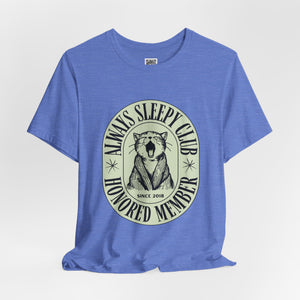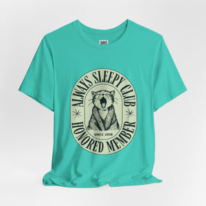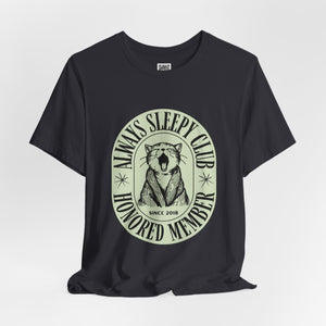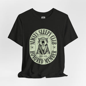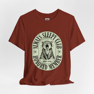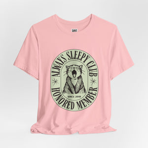 Always Sleepy Club T-Shirt – Funny Yawning Cat Tee for Nap Lovers & Lazy Day Vibes