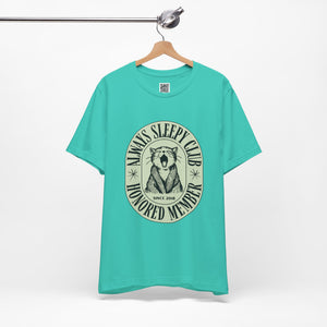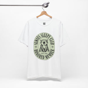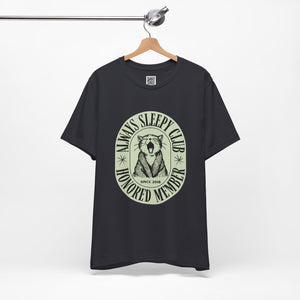 Bold Vintage Typography – “Always Sleepy Club – Honored Member” adds retro flair and personality