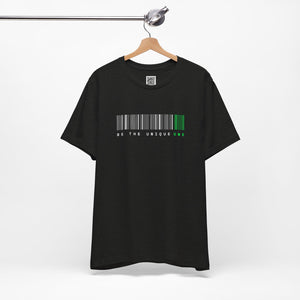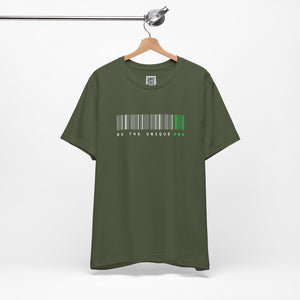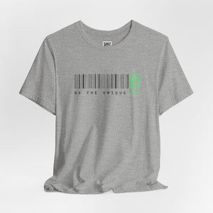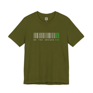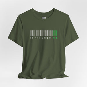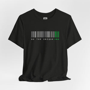 Stand out in a world that blends in. Our "Be The Unique One" T-shirt is a sleek, modern statement piece for those who choose originality over conformity. Featuring a minimalist barcode graphic with one standout green element, this design symbolizes individuality in a digitized world.