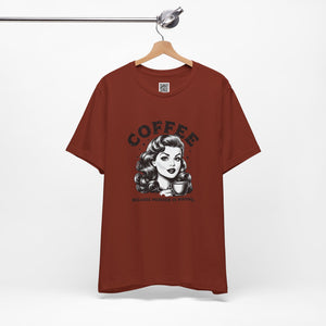 Sassy, vintage, and a little unhinged—this retro design says exactly what we’re all thinking before that first cup of coffee. Featuring a glamorous 1950s-style woman clutching her cup with an unsettling calm, the phrase “Coffee: Because Murder Is Wrong” blends classic charm with unapologetic dark humor.