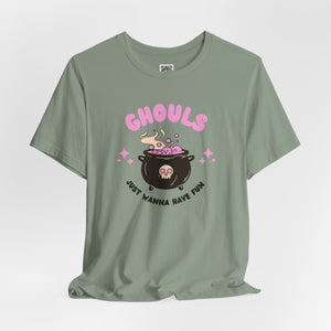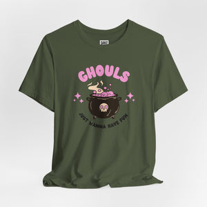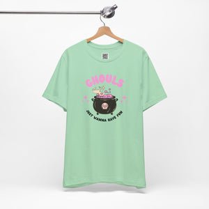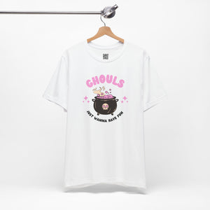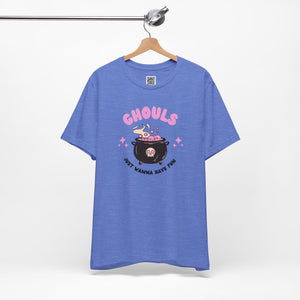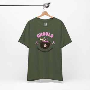 Get your spook on with this adorably eerie “Ghouls” design! Featuring a bubbling black cauldron filled with cute pink ghostly ghouls, dreamy sparkles, and a skull emblem, this whimsical artwork blends creepy and cute in the best way possible. Whether you're into Halloween year-round or just love a little pastel horror, this design is brewed just for you.