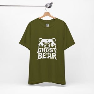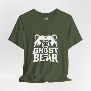 Unleash the spirit of strength and stealth with the Ghost Bear design. Featuring a bold white bear head with an intense snarl and perfectly integrated typography, this graphic is a powerhouse of intimidation and style. The bear's mouth forms the "O" in "GHOST," symbolizing fearless dominance and unity in design.