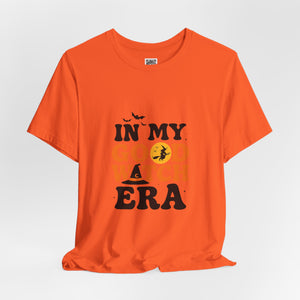 Embrace your inner enchantress with this whimsical “In My Good Witch Era” design! Featuring a bold orange color palette, a flying witch silhouette against a full moon, and a charming witch hat tucked into the lettering, this graphic is perfect for spooky season vibes with a playful twist.