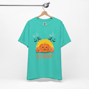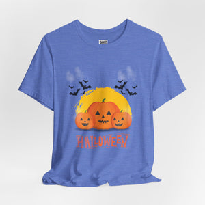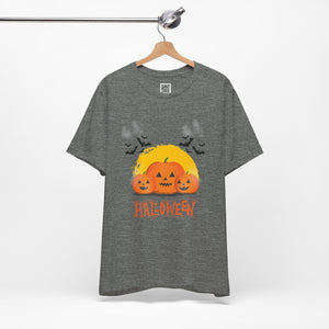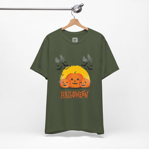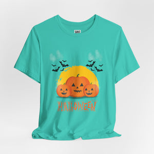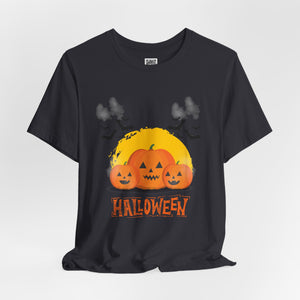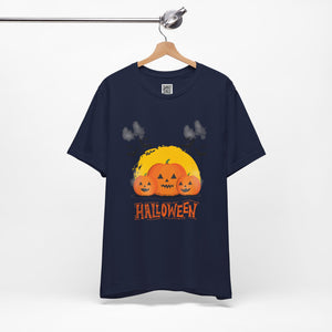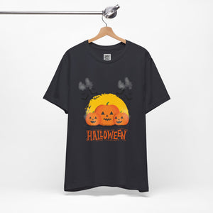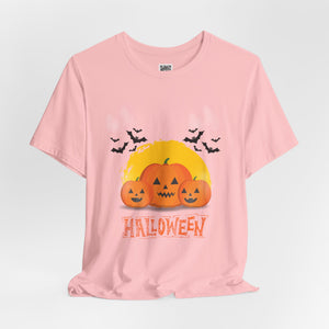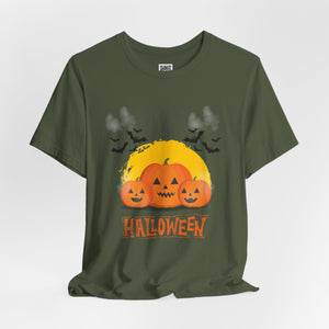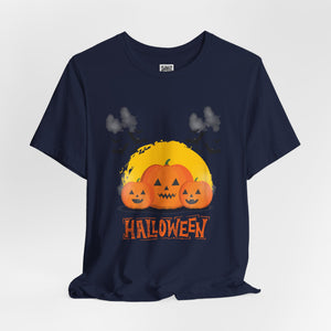 Light up your spooky season with this festive “Pumpkin Party” Halloween design! Featuring three classic jack-o'-lanterns glowing in front of a bright yellow moon, surrounded by bats and wispy clouds, this artwork perfectly captures the playful and eerie spirit of Halloween. The hand-drawn "Halloween" text gives it that rustic charm — ideal for October vibes!