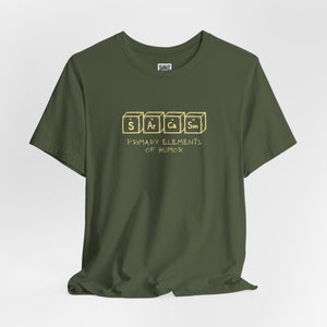 Smart. Sharp. Hilariously sarcastic. The Sarcasm Elements T-Shirt is the ultimate conversation starter for witty minds with a scientific edge. Featuring mock periodic table blocks spelling out S-Ar-Ca-Sm with the phrase “Primary Elements of Humor,” this shirt blends geeky charm with clever sass.