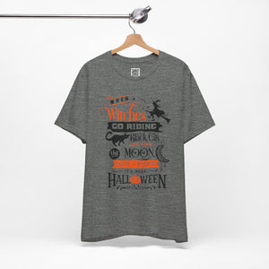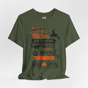 Mystery, magic, and a dash of mischief — this bewitching design captures the charm of Halloween with elegant script and glowing orange hues. Featuring the phrase “Witches Are Seen in Laughs & Whispers” adorned with a swirling flourish and a sly jack-o’-lantern grin, it’s the perfect nod to the enchanting side of the spooky season.